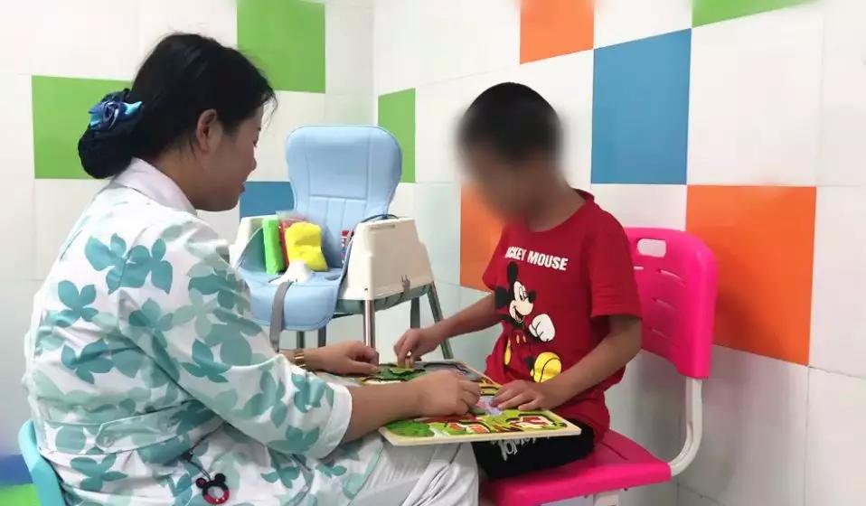 南京天佑儿童医院康复师在给晨晨做康复训练