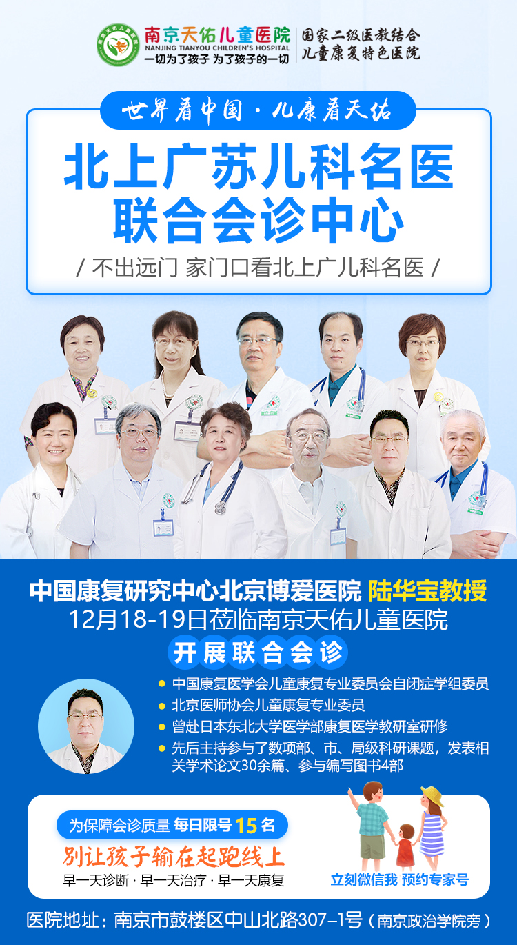 中国康复研究中心北京博爱医院陆华宝教授南京天佑儿童医院亲诊!